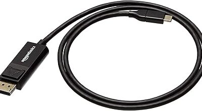 Кабел Amazon Basics USB-C към двупосочен DisplayPort, 3 фута, черен