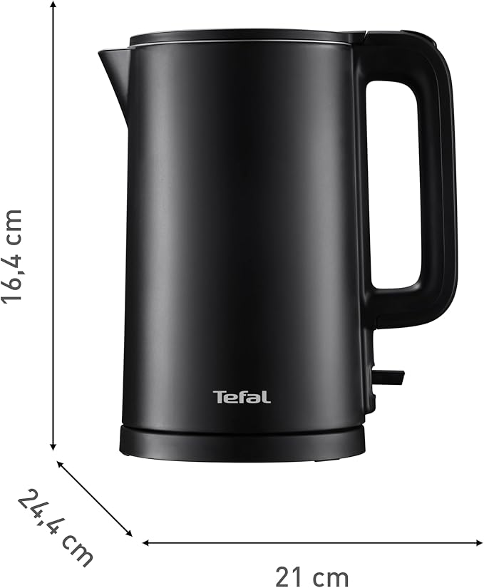 - БЕЗОПАСНА ПОВЪРХНОСТ Електрическа кана с двойна изолация на стените, вътрешна стена от неръждаема стомана, която поддържа вътрешността топла, и пластмасова външна стена, която предпазва ръцете ви.