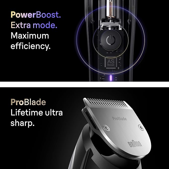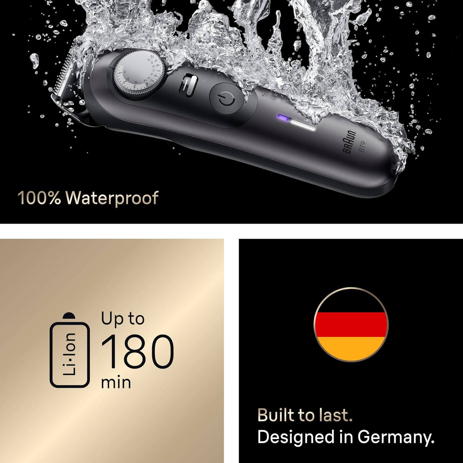 - Професионална прецизност и 100% контрол: Най-добрият тример за брада на Braun, серия 9, ви позволява да подстригвате, бръснете, оформяте и детайлизирате с първокласни инструменти за перфектни линии, гладки преходи и равномерни завършеци.