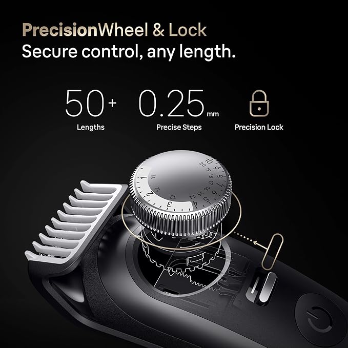 - Край на грешките: Пълен контрол при всяко подстригване благодарение на PrecisionLock и PrecisionWheel с 52 настройки за дължина на стъпки от 0,25 мм