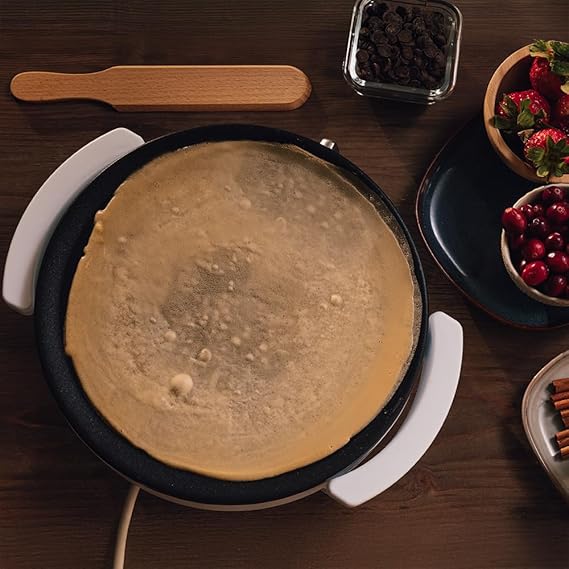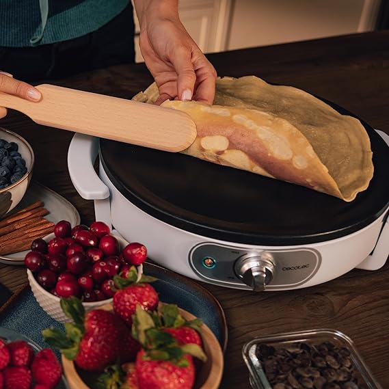 Забавната машина за палачинки Creepy от Cecotec създава вкусни палачинки с размер 30 см. Благодарение на незалепващото покритие, тестото не залепва, а чинията е лесна за почистване и употреба. Забавната машина за палачинки Creepy не само загрява бързо благодарение на мощността си от 1200 вата, но и запича палачинките бързо и перфектно благодарение на равномерното разпределение на топлината.