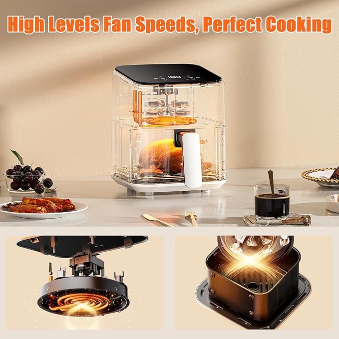 - Спестяване на място: Квадратната кошница увеличава максимално капацитета си от 2,5 литра. С елегантен и тесен дизайн, който минимизира работното пространство, този фритюрник с горещ въздух елиминира бъркотията и ненужните уреди.