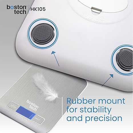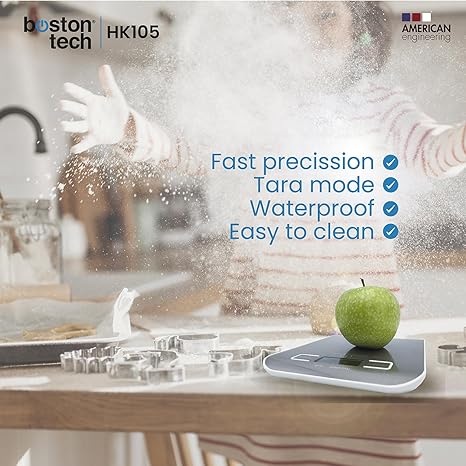 - Издръжливост: Везната е изработена от ABS стомана за хранителни цели с неплъзгащи се скоби. Включва 2-годишна гаранция и се предлага с 2 AAA батерии. Сертификати CE и ROHS. Качество BOSTON TECH.