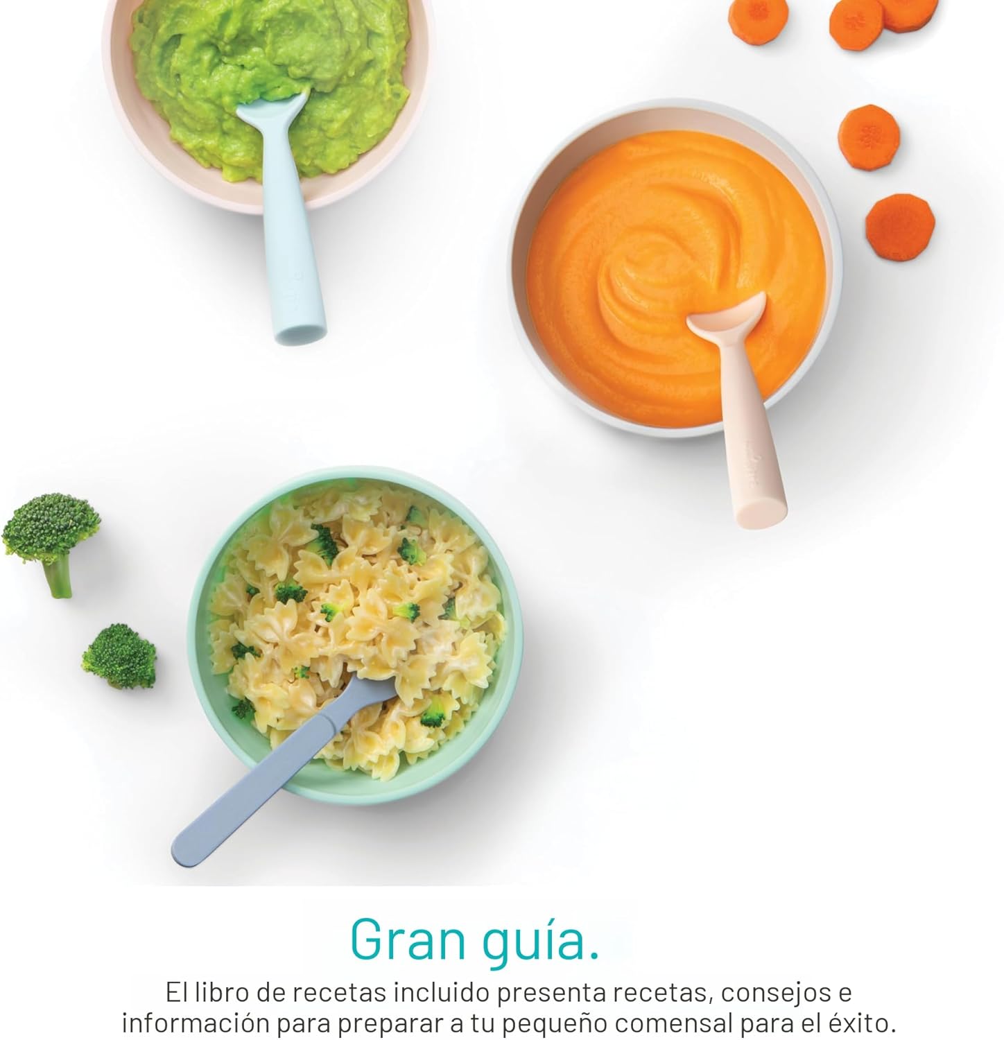 - Включени компоненти: Основа на мотора, купа за процесор, контейнери за съхранение с дата за следене на свежестта, силиконова тава от 340 мл.