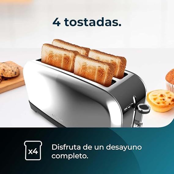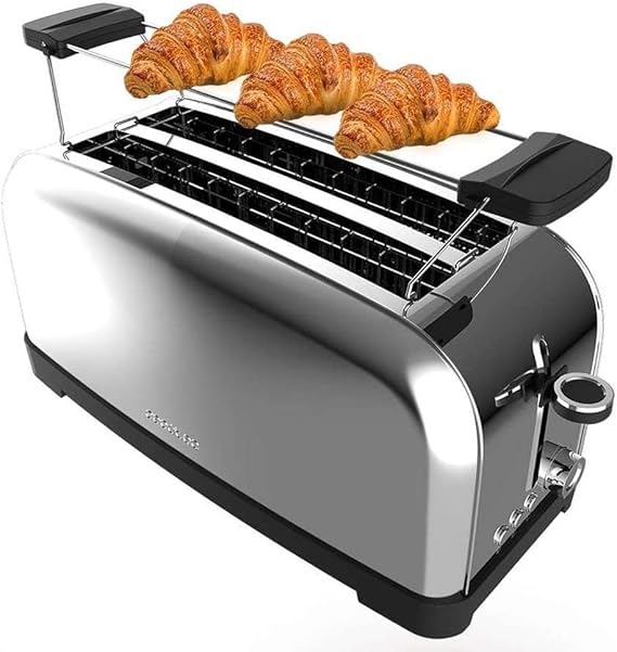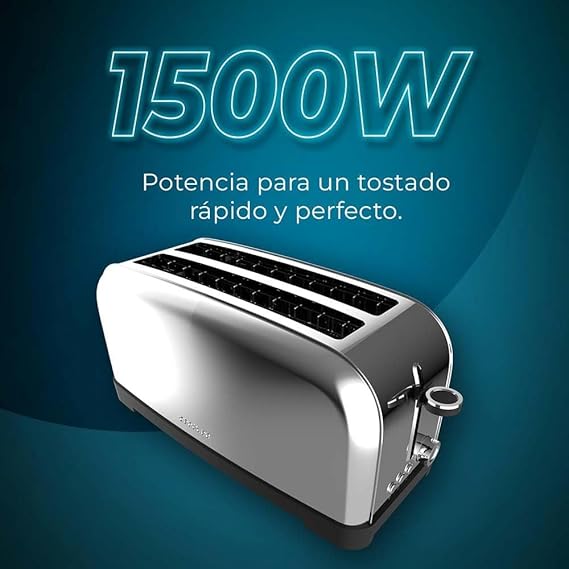 - Тостер с двоен дълъг отвор, мощност 1500 W и отвор с ширина 3,8 см за дебели хлябове.
