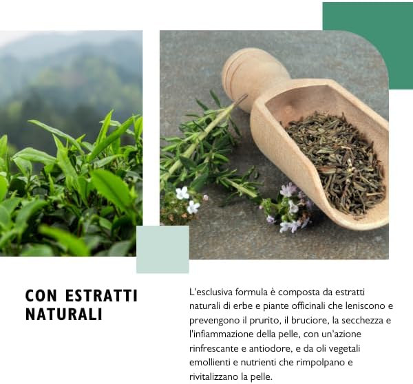 - ИЗОДЕРМИЧНА ФОРМУЛА: Ексклузивната формула се състои от екстракти от билки и лечебни растения с превантивно, защитно, освежаващо и анти-миризма действие; омекотяващи и подхранващи растителни масла за възстановяване и съживяване на кожата.