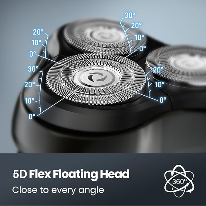 - Прецизна 4D плаваща глава: Изпитайте несравнима гъвкавост с нашата плаваща 4D самобръсначка, експертно проектирана за безпроблемно бръснене. В комбинация с прецизна технология на ножчетата и високоскоростен мотор, тази мъжка самобръсначка се плъзга без усилие по контурите на лицето и шията ви. Тази функция гарантира, че можете да се ориентирате във всеки контур на лицето си, осигурявайки гладко и комфортно бръснене всеки път.