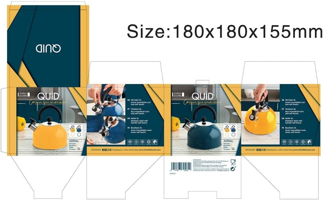 Чайник Astral 2 литра, асорти – различни цветове: син и жълт, сервира се в зависимост от наличността. – Меки бакелитови дръжки и дръжка. – Подходящ за стъклокерамика, индукционни, електрически и газови котлони. – Може да се мие в съдомиялна машина. – Изработен от висококачествена неръждаема стомана. – Вместимост: 2 литра. – Размери: 18 x 18 x 15 см.