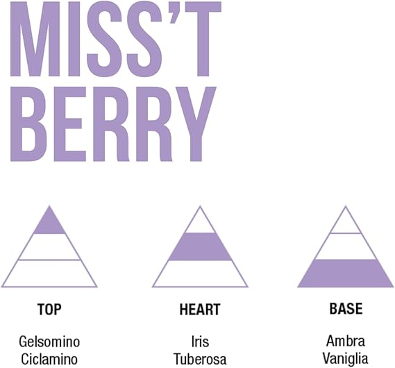 - ПРЕСТРУКТУРИРАНЕ И АРОМАТНА ЕСЕНЦИЯ: Miss’t Berry е неустоим и чувствен аромат на коса. Обогатен с боровинково олио и растителен кератин от коноп и ориз, той има защитно и преструктуриращо действие. Ароматът е загадъчен и обгръщащ. Чувствеността на жасмина се стопля от интензивността на съблазнителните нотки на дървесина и ванилия и е обгърната от успокояващите и нежни нотки на бял кехлибар.
