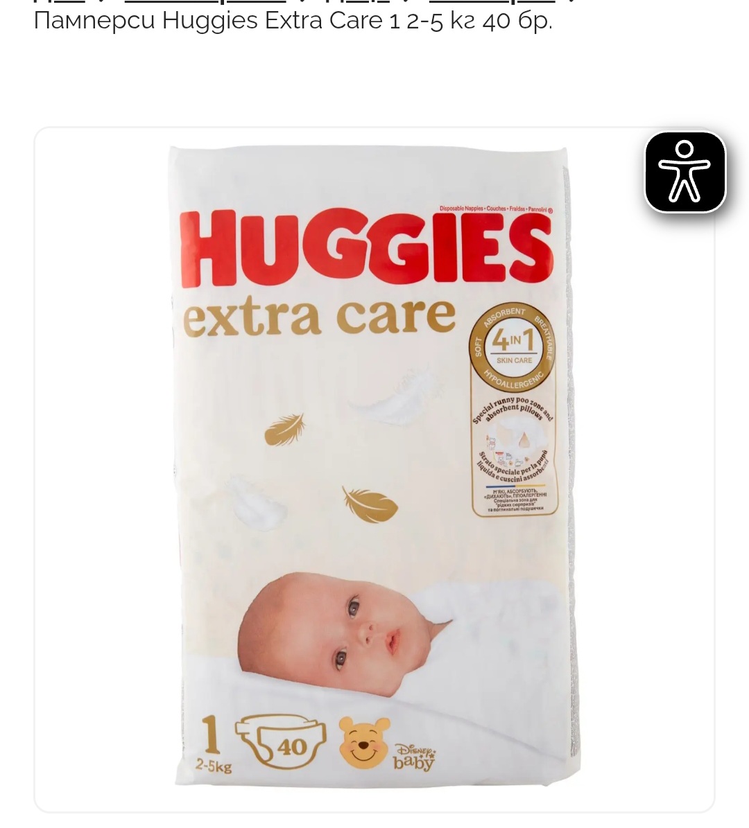 Пелени Huggies Extra Care Size 1 40 бр.