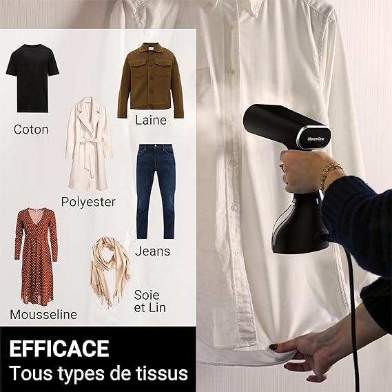 ФРЕНСКИ ДИЗАЙН: 100% френски дизайн и инженерство, придържащи се към строги стандарти за качество и изключителна изработка. Доверете се на SteamOne, френска марка, специализирана в гладене на дрехи с пара, за бърза, ефикасна и безпроблемна грижа за текстила.