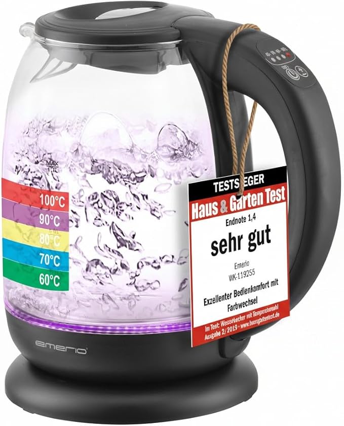 - Скрит нагревателен елемент, изработен от неръждаема стомана, лесен за почистване, боросиликатно стъкло за абсолютна устойчивост на топлина и неутрален вкус, стъкленият съд свети в различни цветове, в зависимост от настройката на температурата.