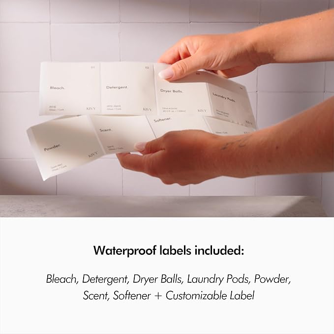 - ВОДОУСТОЙЧИВИ ЕТИКЕТИ ЗА ПРАНЕ – Поддържайте пералното си помещение добре организирано с нашите водоустойчиви етикети, проектирани да издържат на влага и износване, като гарантират, че бутилката ви с течен перилен препарат винаги ще остане чиста и подредена.
