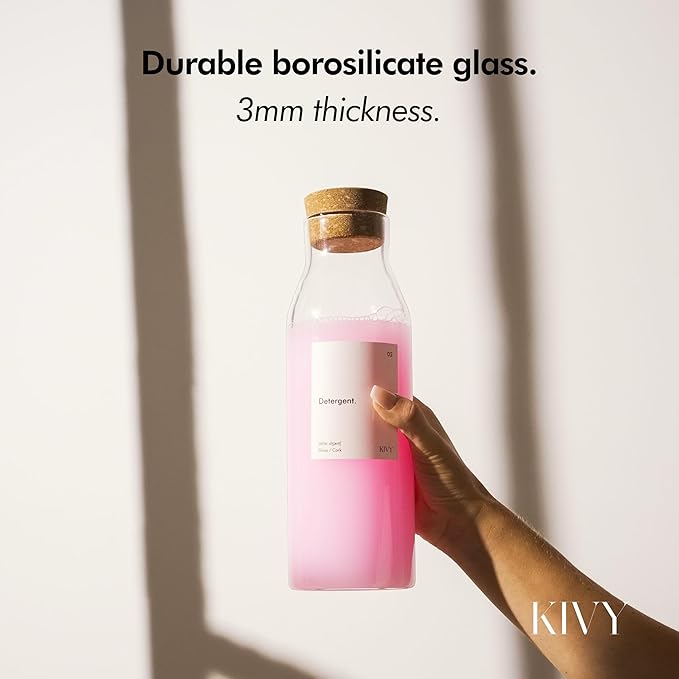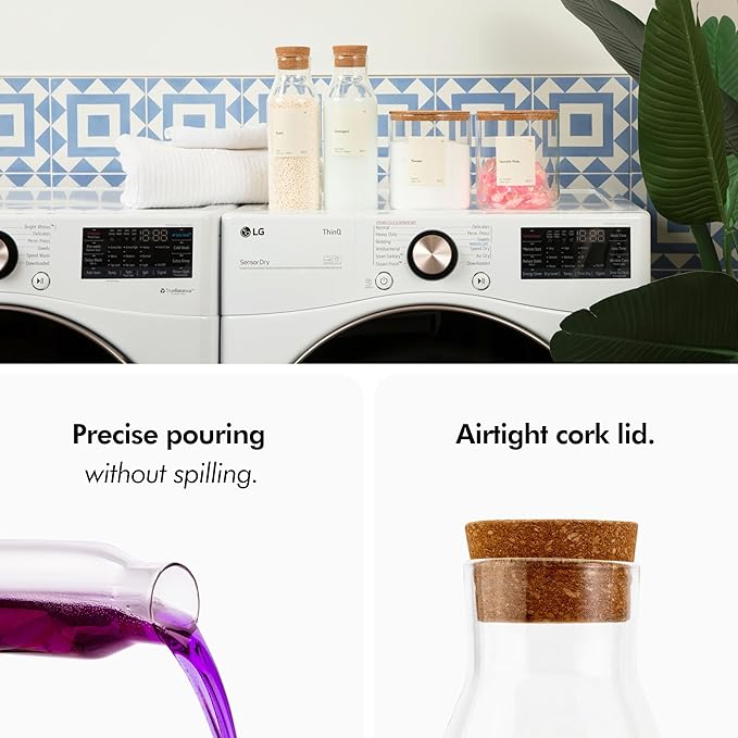 - ПРЕМИУМ СТЪКЛО – Изработена от боросиликатно стъкло и със здрава коркова капачка, нашата бутилка е създадена за дълготрайност. Здравата дебелостъклена стъклена бутилка за пране е много издръжлива, а сертифицираната от FSC коркова капачка придава естествен и екологичен вид.