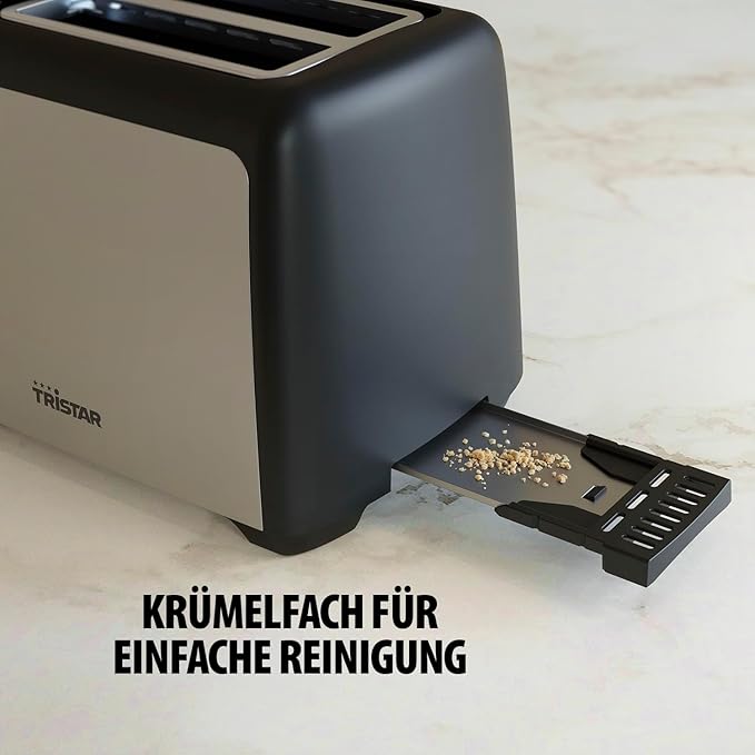 - ЛЕСНО ПОЧИСТВАНЕ С ТАВИЧКА ЗА ТРОХИ – Подвижната тавичка за трохи улеснява почистването, за чиста кухня и спретнат тостер.