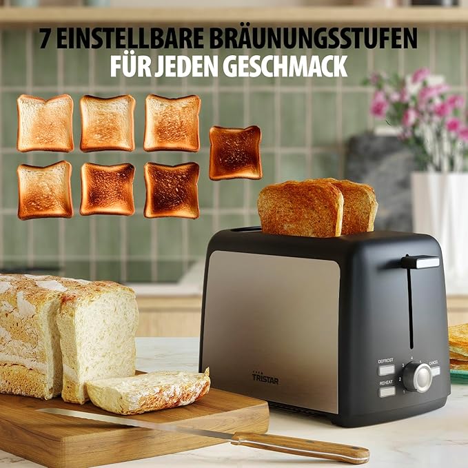 - КОМПАКТЕН, ЕЛЕГАНТЕН ДИЗАЙН Със стилния си черен дизайн и дизайн от неръждаема стомана, този тостер допълва всяка кухня, като същевременно спестява място.