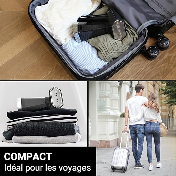 - Компактен: компактен и лек, този преносим уред за гладене на пара е вашият идеален спътник при пътуване.