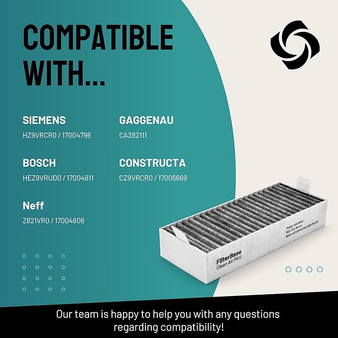 - РЕЗЕРВНИ ФИЛТРИ ЗА: Нашите филтри за миризми FilterBase са идеални за: Bosch HEZ9VRCR0 (17004805), Siemens HZ9VRCR0 (17004796), Neff Z821VR0 (17004806), Gaggenau CA282111 (1 (1700000 4818) и Constructa CZ9VRCR0 (17006669).