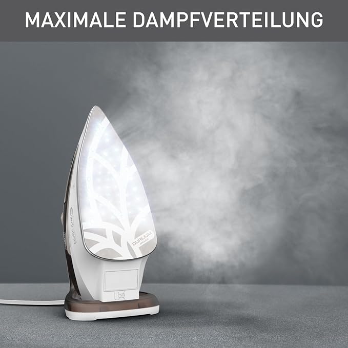 - Перфектно плъзгаща се гладаща повърхност: гладаща повърхност Durilium AirGlide със 100% активни отвори за пара за максимално разпределение на парата и отлично плъзгане