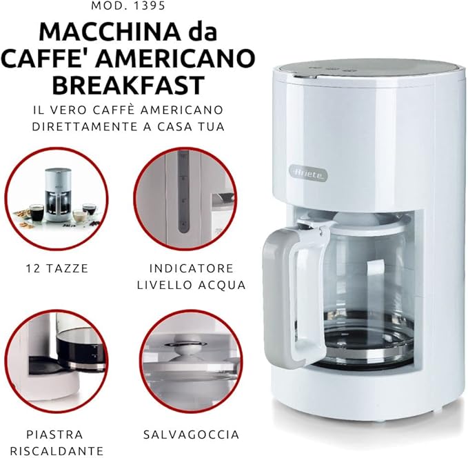 - До 12 джоба: тази кафемашина Ariete приготвя вкусно, ароматно кафе Americano без капки, благодарение на практичния чучур.