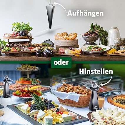 - Практично: Нашият репелент за мухи има удобна кука на основата за окачване. Висококачествените роторни лопатки са изработени от изключително мека пластмаса и спират незабавно при допир. Няма риск от нараняване.