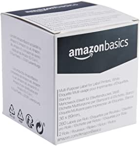 AmazonBasics – Многофункционални етикети за етикетни принтери, бели, 36 mm x 89 mm, 260 етикета на ролка, 2 ролки