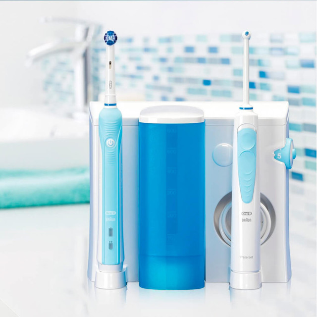 Braun MD 20 Oral-B Professional Care OxyJet конец за зъби. Уникалната технология OxyJet обогатява водата с микромехурчета, премахвайки бактерии, плака и хранителни остатъци от труднодостъпни места, масажирайки венците и предотвратявайки натрупването на зъбен камък. Два режима на работа (единичен поток и турбо). Плавен, петстепенен контрол на водното налягане (за цялостно почистване на труднодостъпни места или нежна грижа за чувствителни зони).