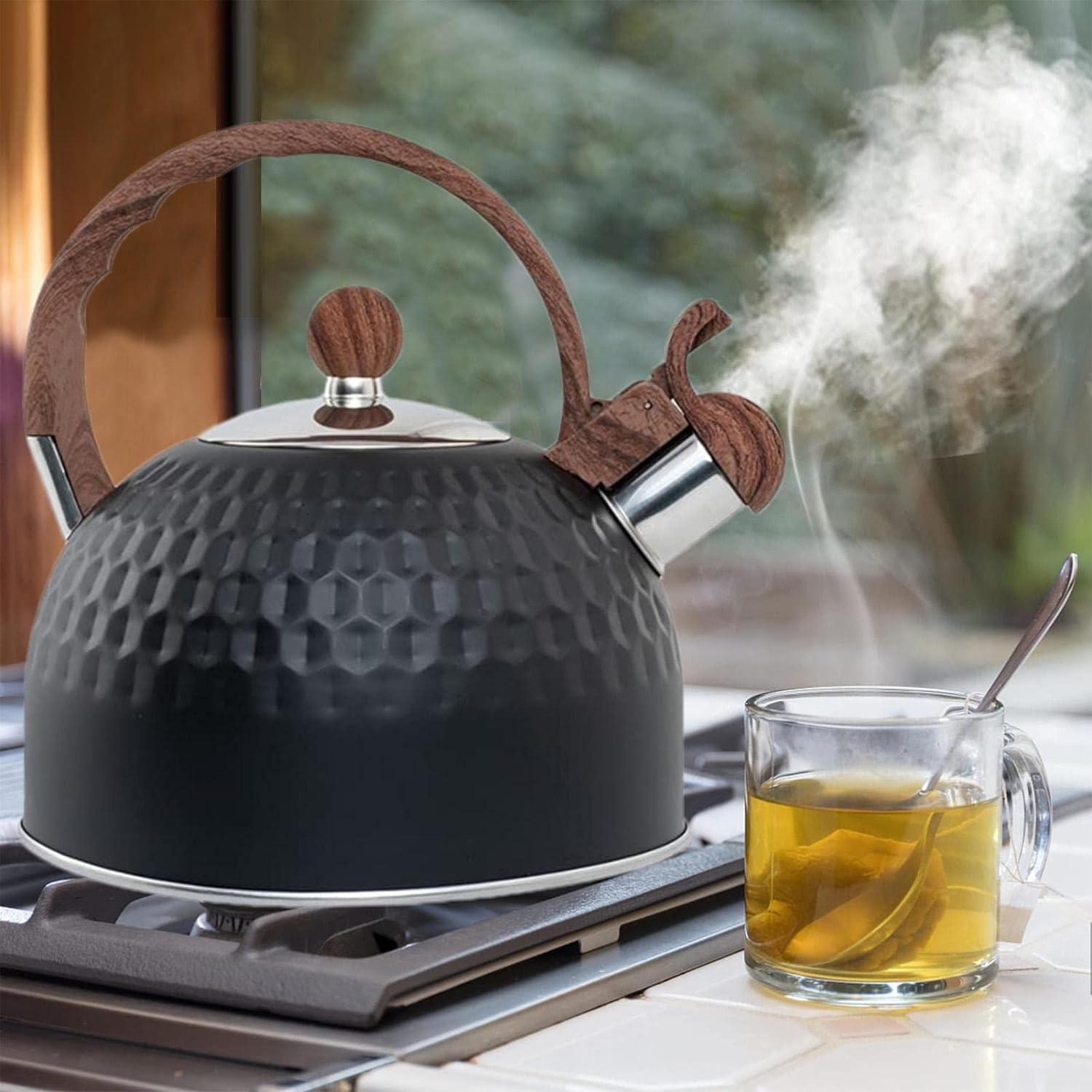 Възможност за наливане и пълнене: Чайникът има повдигаща се капачка за безопасно, лесно наливане на гореща вода, лесен за наливане и пълнене, оборудван с ергономична бакелитна дръжка за удобен захват и устойчивост на изгаряне.