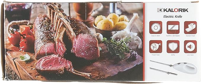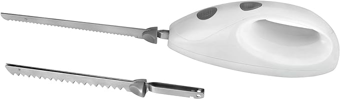 - Електрически нож за лесно, перфектно нарязана храна, идеален за нарязване на хляб, торта, месо, замразена храна, печено и много други