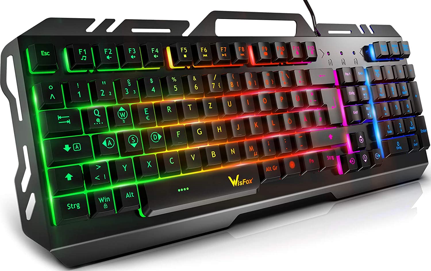 Дълготраен и устойчив на разливане дизайн: Устойчив на пръски дизайн на клавиатурата. Тествана над 10 000 000 натискания на клавиши, клавиатурата WisFox е изключително издръжлива, за да осигури по-дълъг живот. Предлага се с изцяло цифрова клавиатура, 6 футов високоскоростен USB, кабел и USB порт без корозия.