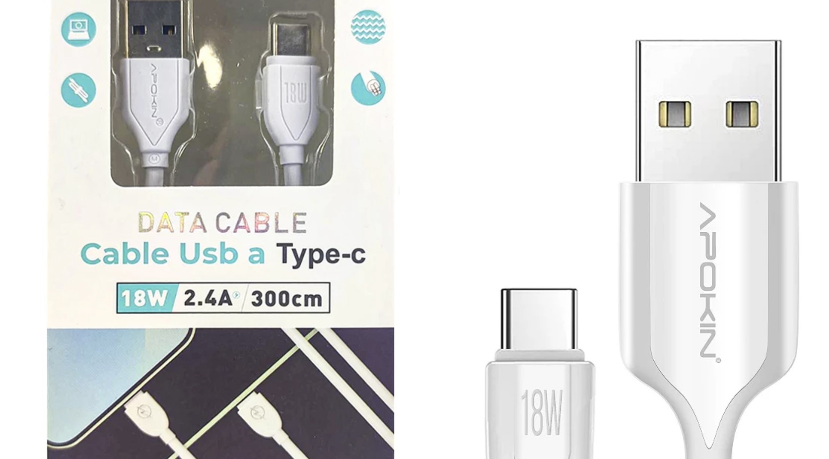 Кабел за данни и бързо зареждане 3.0A APOKIN USB 2.4 към тип C, 100 см