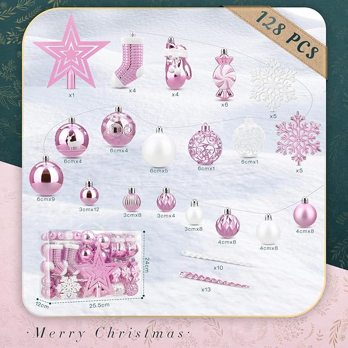 - 【Гъвкавост на употреба】Коледни топки, 128 пластмасови коледни украси за елха, предназначени за вътрешна и външна употреба, така че можете да украсите елхата си на терасата или в градината.