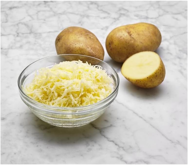 Картофен цилиндър за настъргване на картофи или зеленчуци като тиквички. Изработена от неръждаема стомана. Може да се мие в съдомиялна машина.