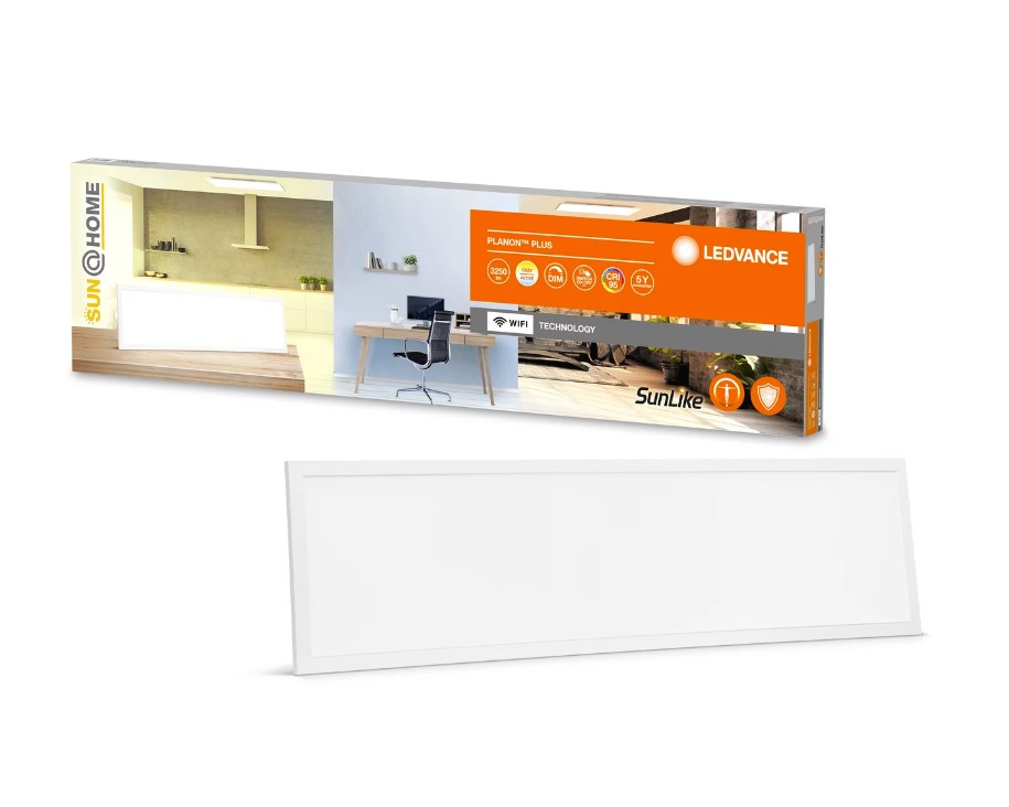 LEDVANCE SUN@HOME Planon Plus е панелно осветително тяло за монтаж в скатен таван с технология Human Centric Lighting. Въз основа на настройки като час, дата и географско местоположение, HCL системите усещат изгрева и залеза всеки ден от годината. Системата автоматично ще регулира светлинния поток и цветната температура денонощно, за да осигури възможно най-оптималната светлина за поддържане на естествен циркаден ритъм. Пълноспектърните светодиоди с Ra95 осигуряват по-добра и по-естествена светлина. Намалена синя светлина, която е по-удобна и намалява напрежението на очите. Цветната температура между 2200K и 5000K има няколко положителни ефекта, като подобряване на нивото на активност и бдителност през деня. Осигурява повишена концентрация и ефективност и подобрява ритъма и интензивността на съня. Продуктите имат и иновативна технология за покритие на приспособленията, която се бори с бактериите и миризмите в домакинството. Управлява се чрез приложението LEDVANCE SMART+ WiFi (с поне Android™️ 4.4 или iOS 9.0). Възможен контрол с Google Assistant и Amazon Alexa. За управление с приложение или гласово управление е необходима съвместима система Smart home. Необходим е смарт телефон или таблет за управление чрез LEDVANCE SMART+ WiFi App.