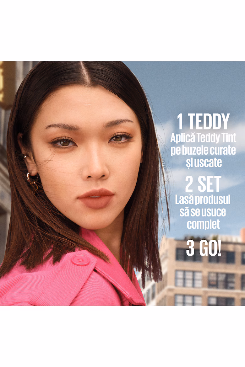 Течното червило Super Stay Teddy Tint на Maybelline New York ще Ви осигури дълготраен и безупречен вид. Матиращата формула е създадена, за да издържи до 12 часа, като същевременно запазва устните Ви меки и комфортни. Не оставя следи, което го прави идеален за всяка дама, която цени удобството и безупречния външен вид. Благодарение на своята лека текстура, червилото се нанася лесно и равномерно, като осигурява плътен цвят само с едно нанасяне.