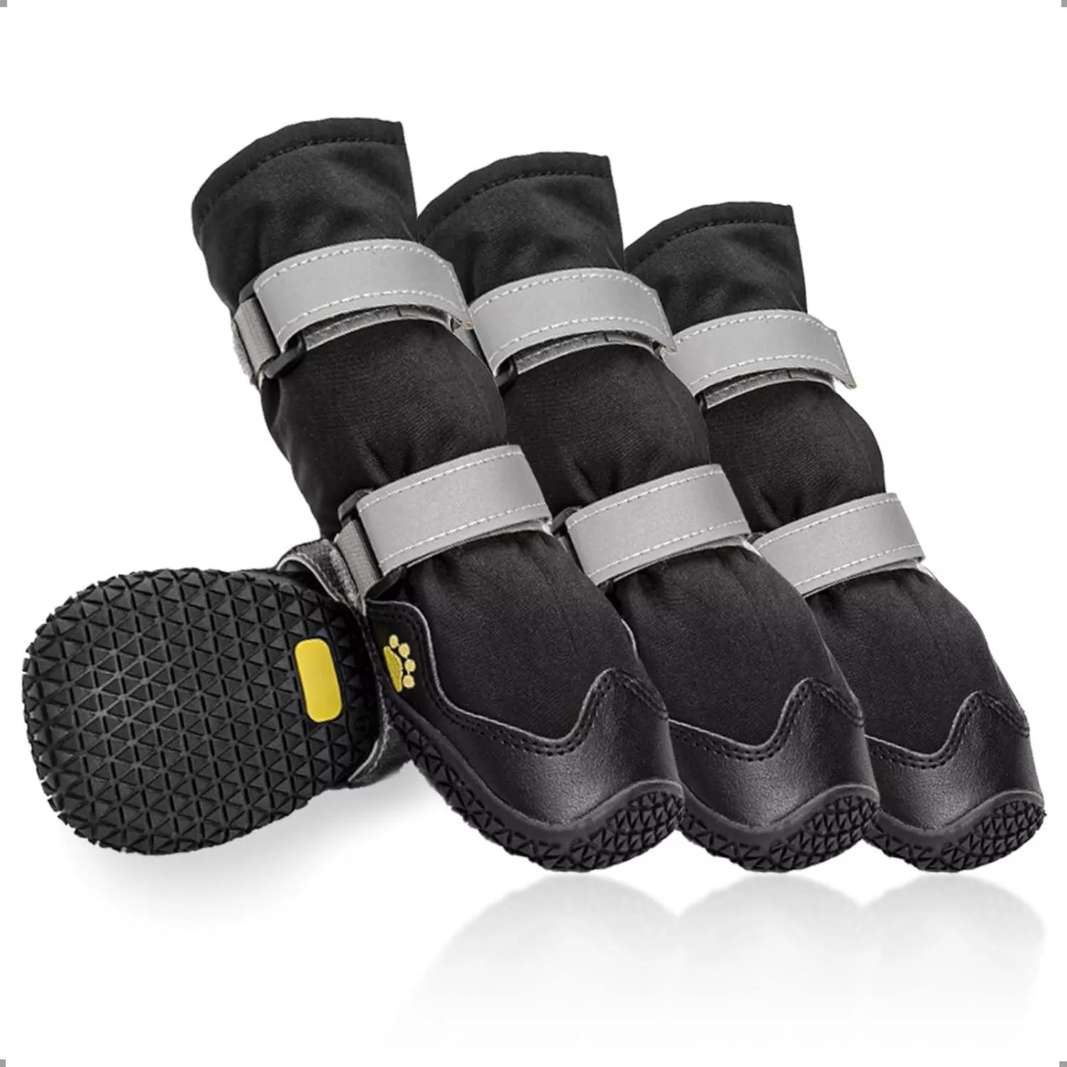 - водоустойчив материал, мека подплата отвътре и гума против плъзгане. Леко и дишащо държи кучетата свободни. Водоустойчивият материал поддържа обувките сухи на мокър път. Тези обувки за кучета за разходка биха били чудесен избор.