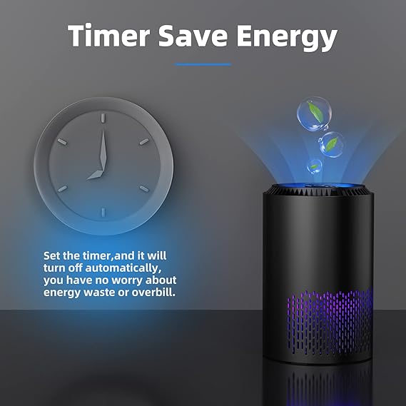 - 【Ниска консумация на енергия】Този пречиствател на въздух за спалня е с мощност 22 вата, което е енергийно ефективен. Освен това, този пречиствател на въздух има функция таймер, където можете да зададете време и устройството ще се изключи автоматично. Не е нужно да се притеснявате за консумацията на енергия или сметките за ток.