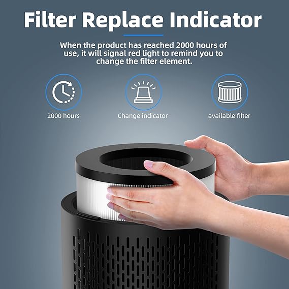 - 【Срок на годност за смяна на филтъра】За да се осигури непрекъснато пречистване на въздуха, пречиствателят на въздух за прах се предлага с изчислено време за употреба на филтърния елемент. Когато филтърният елемент е бил използван в продължение на 2000 часа, червената светлина ще светне, за да ви напомни да го смените. Препоръчваме ви да сменяте аксесоарите на филтърния елемент на всеки 3-6 месеца.