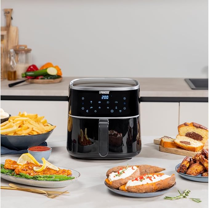 - Пригответе пържени картофи или разнообразни и балансирани ястия с този Airfryer Princess 182244. Печене, месо, риба и други: Неговите 6 предварително записани програми и функциите за загряване и поддържане на топло ви позволяват да разширите възможностите си за готвене десетократно с един уред.