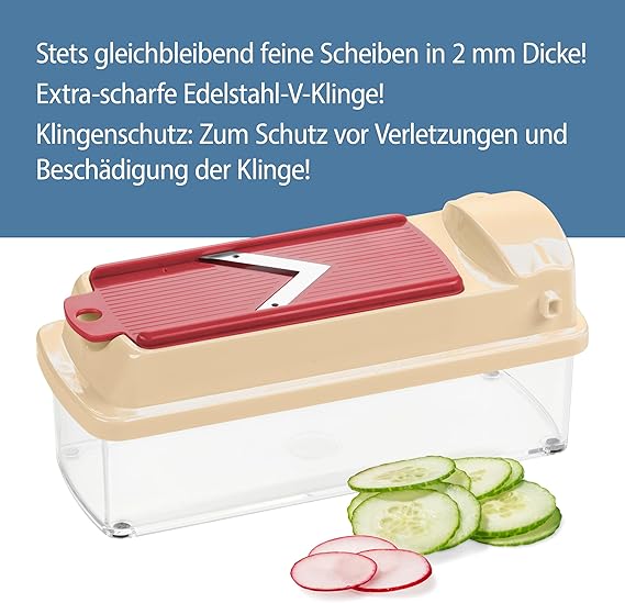 - Високо качество – Изключително здравият режещ капак се захваща без усилие върху неплъзгащия се събирателен контейнер. Прецизно шлайфаните остриета от неръждаема стомана с качество GNOX са остри като бръснач, здрави и устойчиви на ръжда