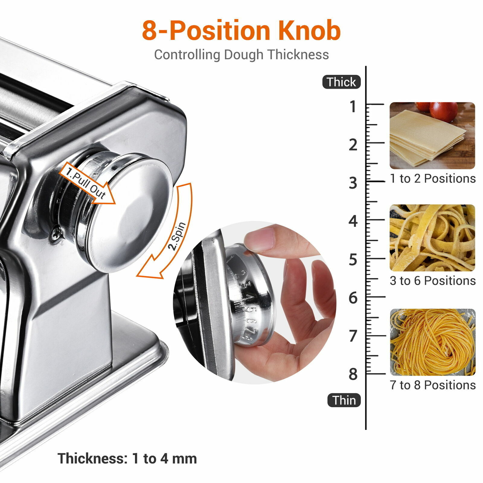 Копчето за регулиране улеснява определянето на дебелината на вашата паста – можете да избирате от 0,5 до 3 mm.