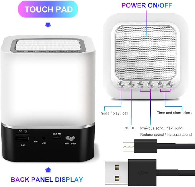 - 【Цветна нощна лампа за деца】Нощна лампа с тъч сензор, 3-степенна яркост, мека топло бяла светлина и 7-цветни LED светлини. Топлата светлина може да се използва за релакс, хол, четене в спалня и като детска нощна лампа. А многоцветните светлини могат да се променят автоматично в ритъма на музиката.