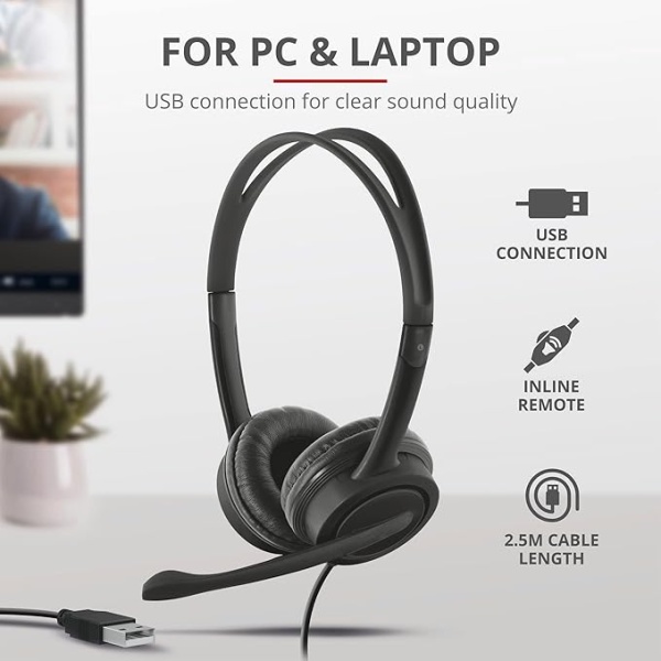- ЛЕСНА USB ВРЪЗКА – Благодарение на лесната за използване USB връзка, тези слушалки за компютър работят в момента, в който ги включите в компютъра или лаптопа си. Ще се насладите на цифрово качество на звука, когато използвате тези слушалки с приложения като Zoom, Skype или Teams.
