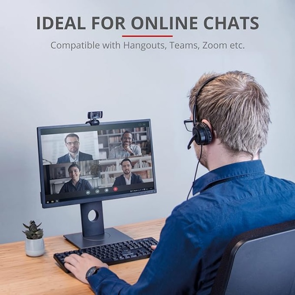 - УДОБЕН ДИЗАЙН – Регулируемата лента за глава позволява на всеки да носи тези слушалки с лекота, а меките, изкуствени наушници осигуряват комфорт; дори по време на дълги видео разговори