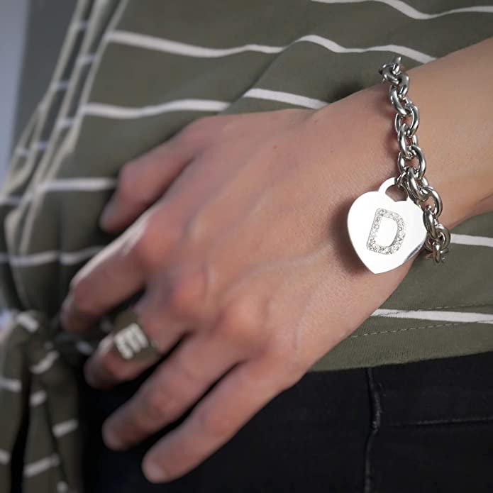 С горна част във формата на сърце, начална буква с кристали.