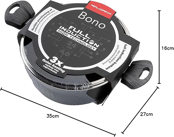 - Пълна индукция: основата с пълна индукция се загрява 3 пъти по-бързо от други индукционни котлони. Може да се използва на котлони с различен диаметър, както големи, така и малки, тъй като разпределя топлината равномерно.