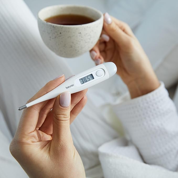 Дигиталният термометър с Beurer FT 09/1 измерва температурата на тялото изключително лесно с технологията за контактно измерване. В него няма живак. Изработен е изцяло от пластмаса и е водоустойчив, за да може лесно да бъде почистен и дезинфекциран.