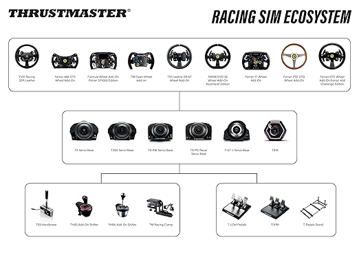 - Съвместим с продуктовата екосистема на Thrustmaster (колела, педали и лост за превключване се продават отделно)
