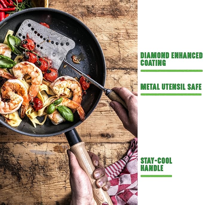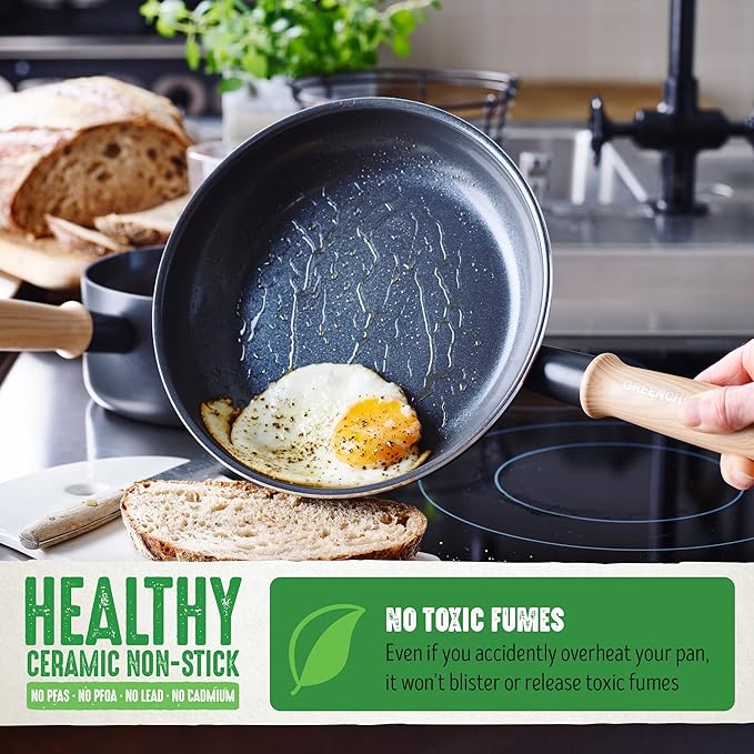 - Нашето здравословно и лесно за почистване керамично незалепващо покритие е получено от пясък и не съдържа PFAS за лесно готвене и почистване