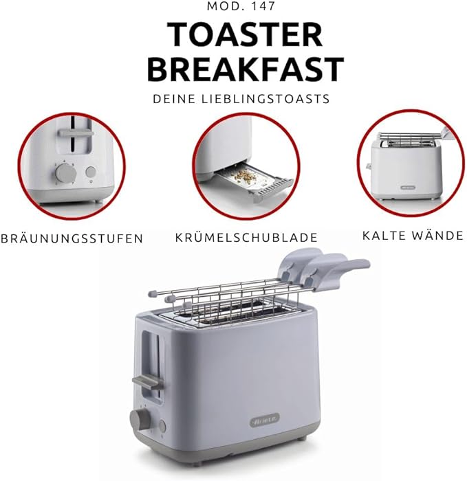 • Пълна безопасност: студени стени на корпуса за максимална безопасност при използване на тостера и 2 щипки от неръждаема стомана за поставяне и изваждане на филийките хляб
